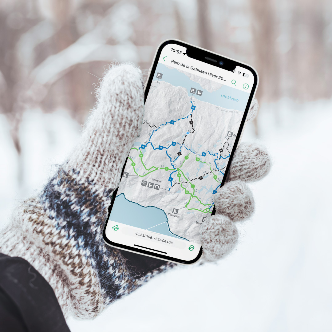 The Gatineau Park official trail maps are now georeferenced and available for free through the mobile app Avenza Maps. Using your phone, you can now track your position in the Park at any time, even if there is no cellular signal.