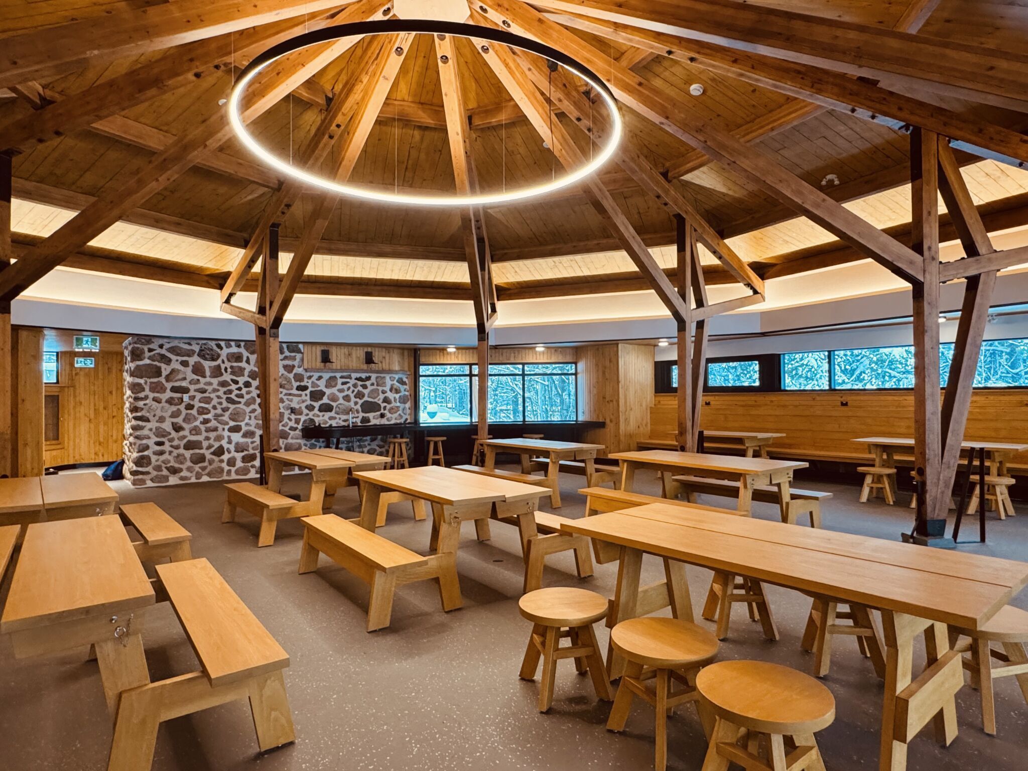 Most of the work was completed by mid-December 2025. For the winter camping season, 10 new ready-to-camp, mini-chalet-style homes have been added. Each unit has a separate bedroom, a living room with couch and chairs, and comes equipped with electricity for added convenience.